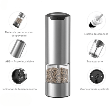 Molino de especias eléctrico de acero Inoxidable USB-C LED