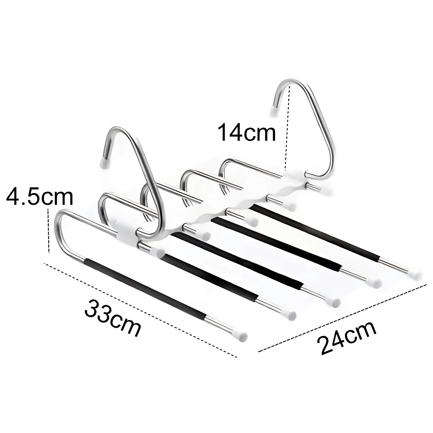 Esta percha está diseñada para ofrecer una solución práctica y eficiente en el almacenamiento de prendas. Fabricado en acero inoxidable y con un recubrimiento de caucho antideslizante, evita que tus pantalones se deslicen, manteniendo todo organizado. Su diseño multifuncional permite colgarla tanto de forma horizontal como vertical, adaptándose a cualquier espacio de tu ropero.